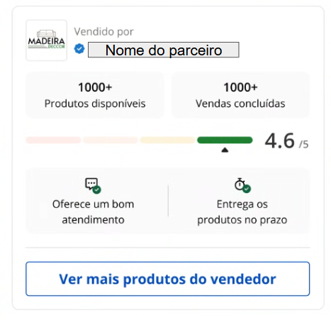 A reputação do nosso parceiro será o reflexo da cor atual de seu score. Por exemplo, um parceiro que tenha um score verde, terá a cor verde em sua reputação na página do produto.