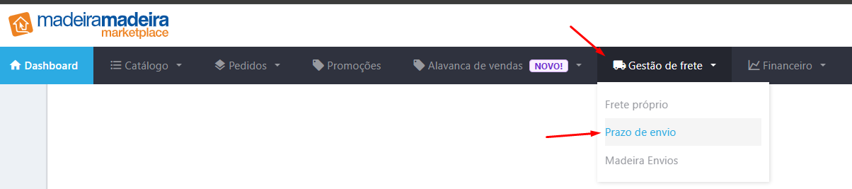 l Acesse Gestão de frete > Prazo de envio